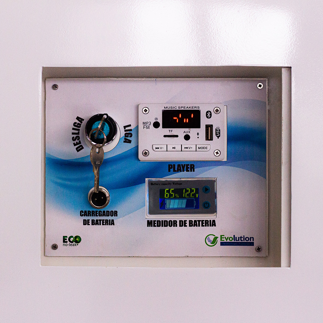 O mesmo é dotado de iluminação de LED indireta, dando ênfase ao nome da funerária ou cemitério de maneira elegante. Também existe iluminação na parte inferior do caminho, destacando-o de maneira harmoniosa.